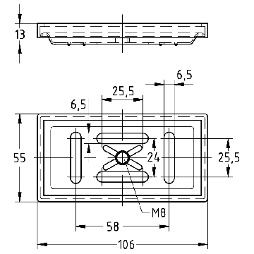 Boîtier avec Taraudage M8 et couvercle, pour bande de velcro, zingué