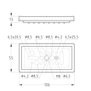 • Fixations multiples grâce aux perçages au dos du boîtier
