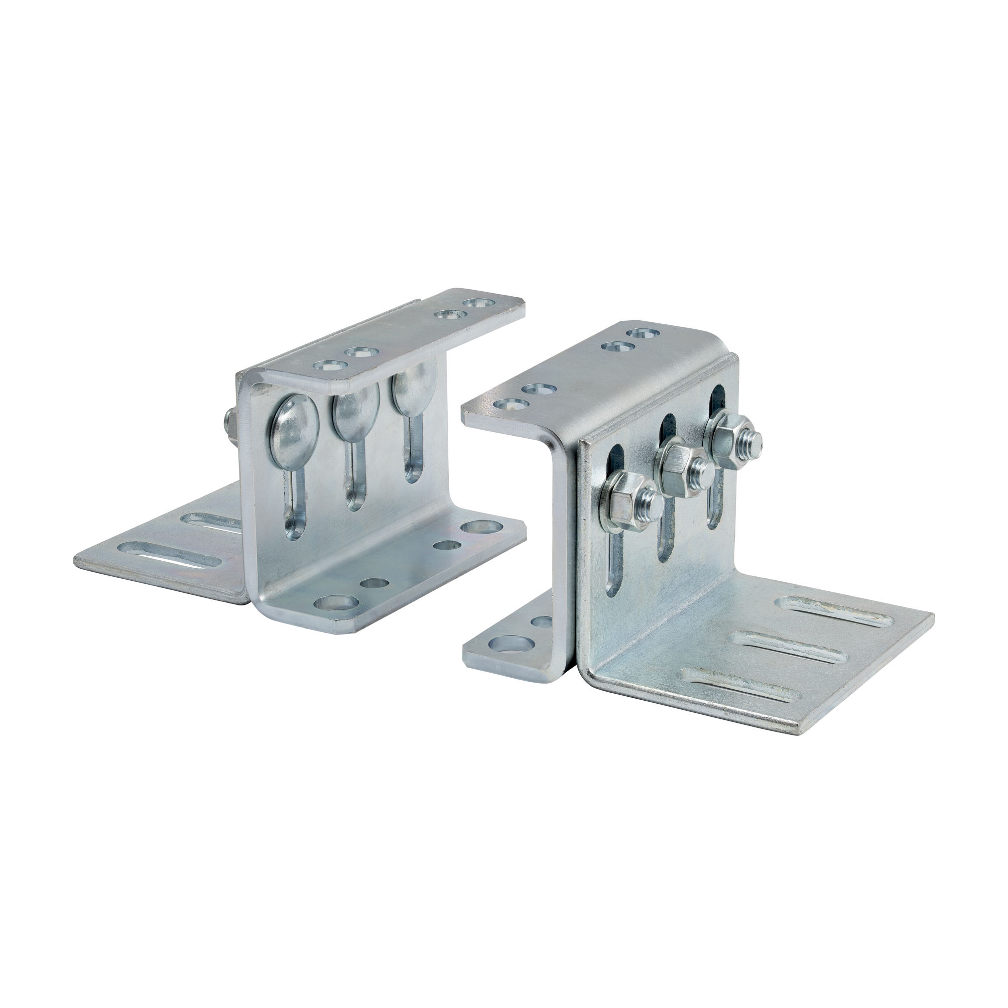 Kompletter Bausatz besteht aus: 2 Befestigungswinkeln, 2 Adapterwinkeln, 6 Schlossschrauben M12, 6 Sechskantmuttern M12, 6 Unterlegscheiben für M12. Alle Teile in verzinkter Ausführung.