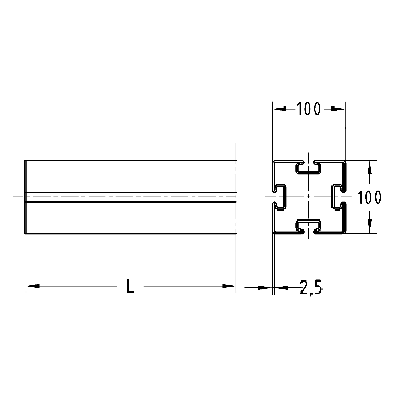 MPT-Tragprofil Q100, 2,5 mm, Länge: 6.000 mm, 4-schlitzig, feuerverzinkt