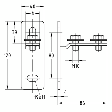V2A MPC-Stirnflansch quer für Profil 38/40