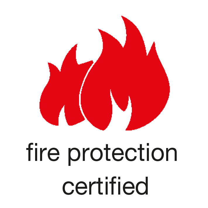 Testé au feu selon DIN 4102 ou DIN EN 1363, classes de résistance au feu F30, F60, F90, F120.